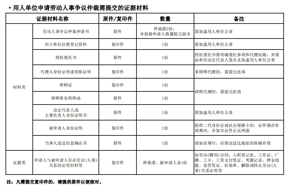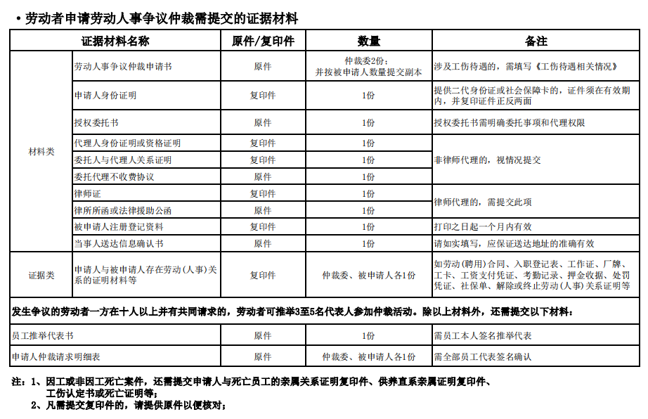 提交证据材料清单