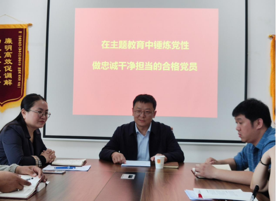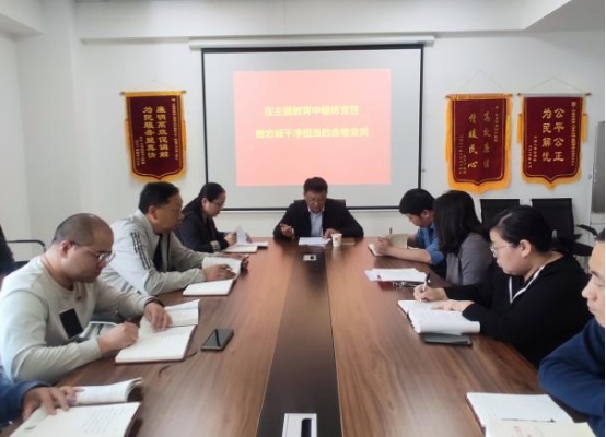 为推进学习贯彻习近平新时代中国特色社会主义思想主题教育走深走实,进一步提升党员干部思想认识,按照局党组工作部署,10月24日下午,市人社局四级调研员周鹏到联系点许昌市劳动人事争议仲裁院,以《在主题教育中锤炼党性 做忠诚干净担当的合格党员》为题,为仲裁院支部全体党员上了一堂内容丰富生动的党课。