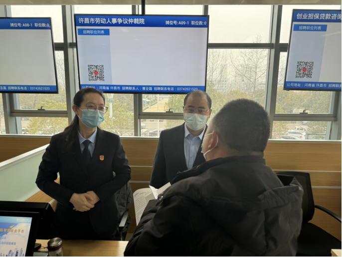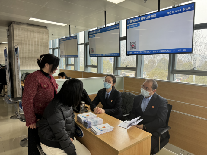 2024年3月5日,许昌市劳动人事争议仲裁院抓住许昌市人社局与许昌市总工会联合开展的“2024年春风行动工会专场招聘会”的活动机会,将劳动法律知识宣传及劳动维权服务搬到了招聘会现场。在此次活动中,许昌市劳动人事争议仲裁院两位专职仲裁员现场为求职者及用人单位提供劳动关系方面的法律咨询、劳动纠纷疑问解答等面对面的服务,创新性地开展了“普法宣传走出去、纠纷调处迎进来”的服务,实现劳动者及用人单位调解纠纷“零成本”、普法宣传“零距离”。