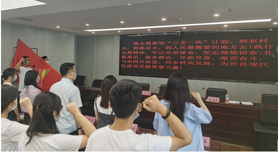 “到基层去,到农村去,到祖国和人民最需要的地方去”。出征仪式上,新招募人员铮铮誓言庄重而响亮,“三支一扶”大学生代表刘子越进行了表态发言,就起好步、开好局,扎实做好工作表明了决心和信心。