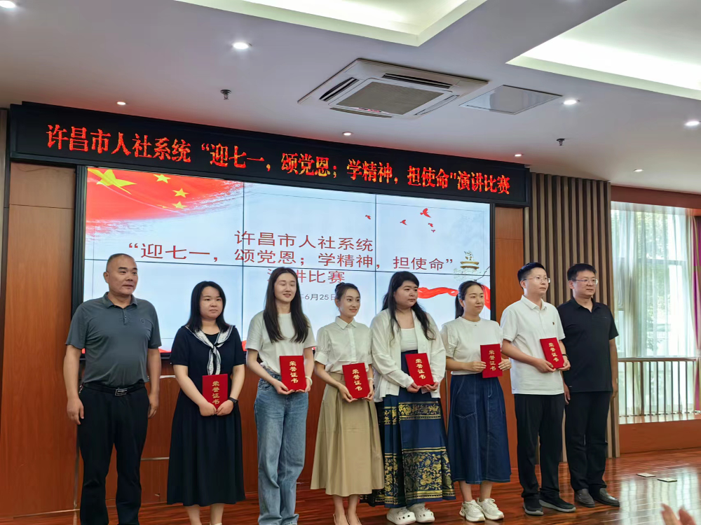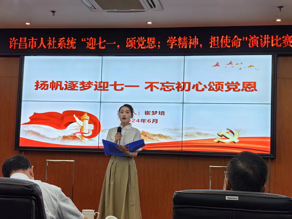 为庆祝中国共产党成立103周年,充分展示人社干部爱岗敬业、无私奉献的良好风貌,6月25日下午,许昌市人社局举办了“迎七一,颂党恩;学精神,担使命”演讲比赛。