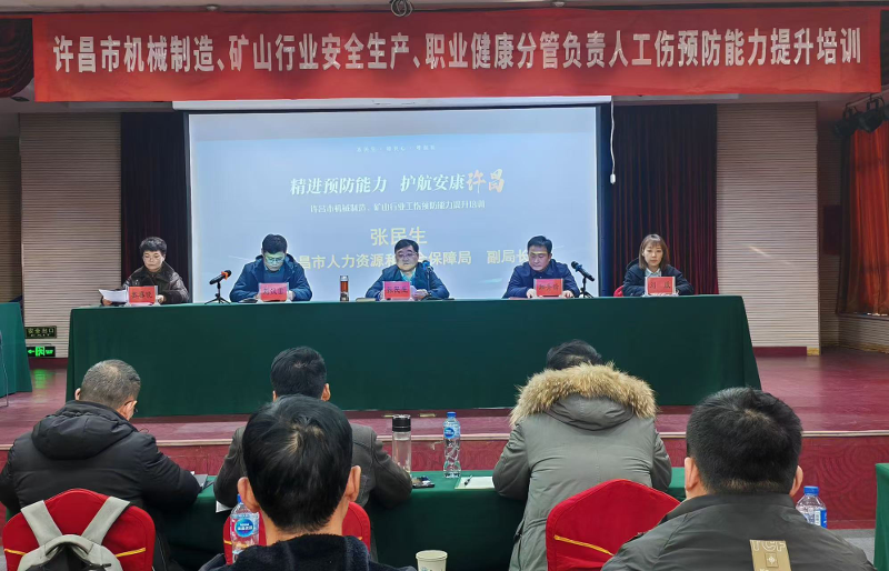为进一步提高全市矿山和机械制造企业从业人员的工伤预防意识和能力,保障职工的生命安全和身体健康,促进企业的稳定发展,12月17日,许昌市2024年矿山和机械制造行业重点企业三类人员工伤预防能力提升培训正式开班。许昌市人社局党组成员、副局长张民生出席开班仪式并讲话,市社保中心主任和青锋主持,市人社局、市应急管理局、市社保中心相关科室负责人参加。