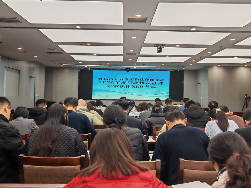 为进一步加强人社执法队伍建设,提升执法人员依法行政能力水平,2024年12月24日,市人社局举行了法律知识考试,持有执法证人员全部参加了此次考试。