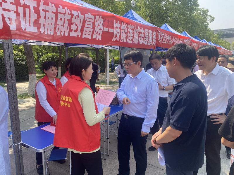 5月28日,2025年许昌市“理论宣讲+文艺演出”走基层万场文明实践活动启动仪式在许都广场举办,市人社局“持证铺就致富路--技能莲城志愿服务”作为文明实践典型项目,参加文明实践集市展演。市委常委、宣传部长王自合在巡展中驻足询问,详细了解项目运转及实施情况,并鼓励人社部门要持续深入基层一线,宣讲好技能政策,提供好优质服务,助力群众持证增收致富。