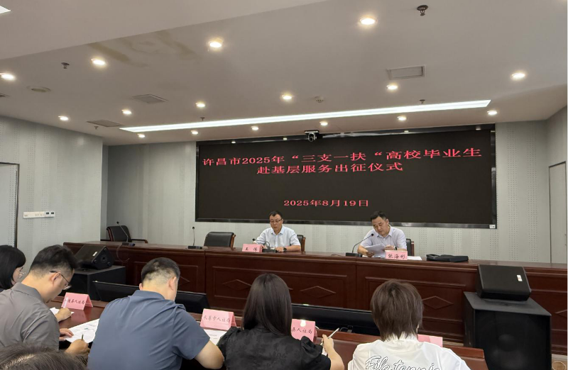 8月19日,许昌市举行2025年“三支一扶”高校毕业生赴基层服务出征仪式。新招募的97名“三支一扶”大学生将奔赴各县(市、区)开展为期两年的支教、支农、支医、帮扶乡村振兴志愿服务,为我市城乡融合共同富裕先行试验区建设贡献青春力量。