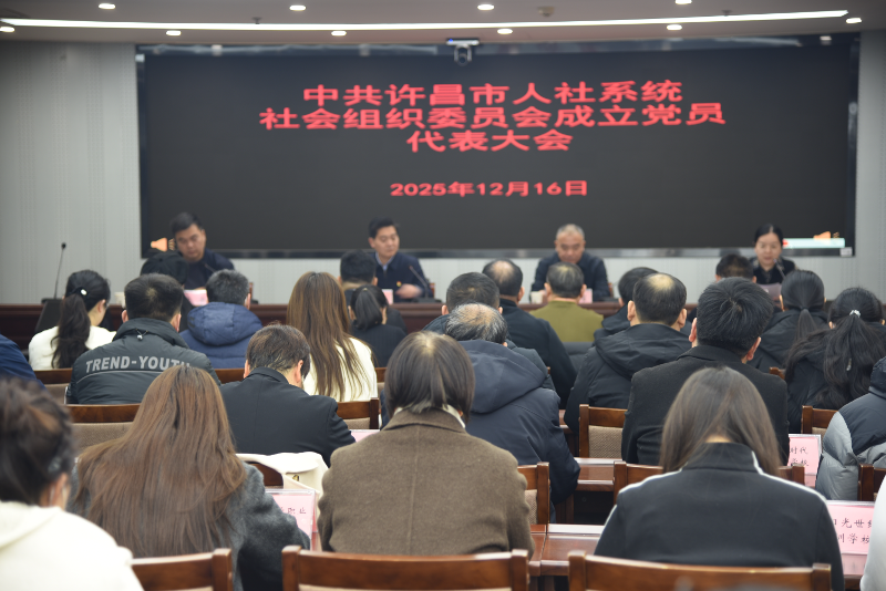 12月16日上午,中共许昌市人社系统社会组织委员会成立党员代表大会胜利召开。会议宣读了市委非公有制经济组织和社会组织工作委员会《关于同意设立中国共产党许昌市人社系统社会组织委员会的批复》,按照组织程序,以无记名投票方式选举产生第一届委员会委员,并召开委员会第一次会议,选举产生书记、副书记,圆满完成党员代表大会各项议程。