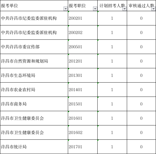 截至2022年2月25日10:00,许昌市2022年市直机关公开遴选公务员报名总人数为66人。报名系统将于2月28日下午17:00准时关闭,请有报考意愿的人员合理安排时间,避免因报名人员集中造成网络拥挤影响正常报名。报名人数较少的职位情况如下。