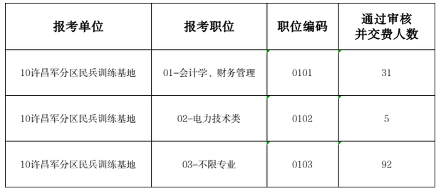 2022年许昌军分区民兵训练基地公开招聘工作人员报名人数 (截至6月21日17:00)