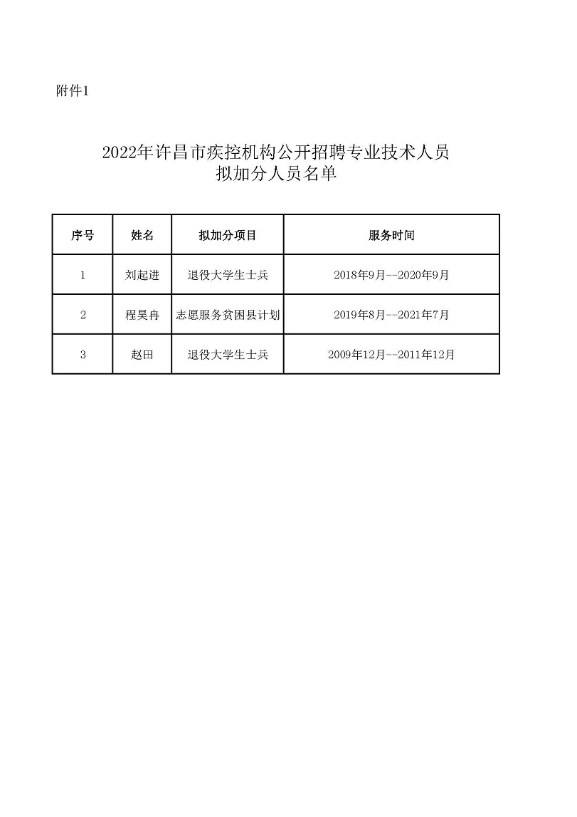 附件:1.2022年许昌市疾控机构公开招聘专业技术人员拟加分人员名单