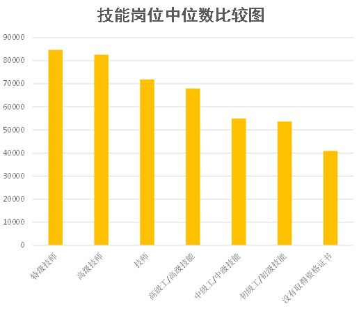 为落实人社部《技能人才薪酬分配指引》和河南省“人人持证、技能河南”建设相关决策部署,引导企业建立以体现技能价值为导向的技能人才薪酬分配制度,提高技能人才经济待遇,本次信息发布还包含了7个职业技能等级岗位工资报酬信息。按高位数排序,特级技师、高级技师、技师、高级工、中级工、初级、没有取得资格证书的岗位年收入分别是154000元、152016元、149419元、130800元、118500元、110663元、86111元,从中位数相互之间增长幅度看依次为102.54%、115.00%、105.78%、123.50%、102.46%、131.32%(见图表),初级工的薪酬明显高于没有取得资格证书人员,各企业为持证人员支付的薪酬较高,我市“人人持证、技能河南”工作已经收到成效。