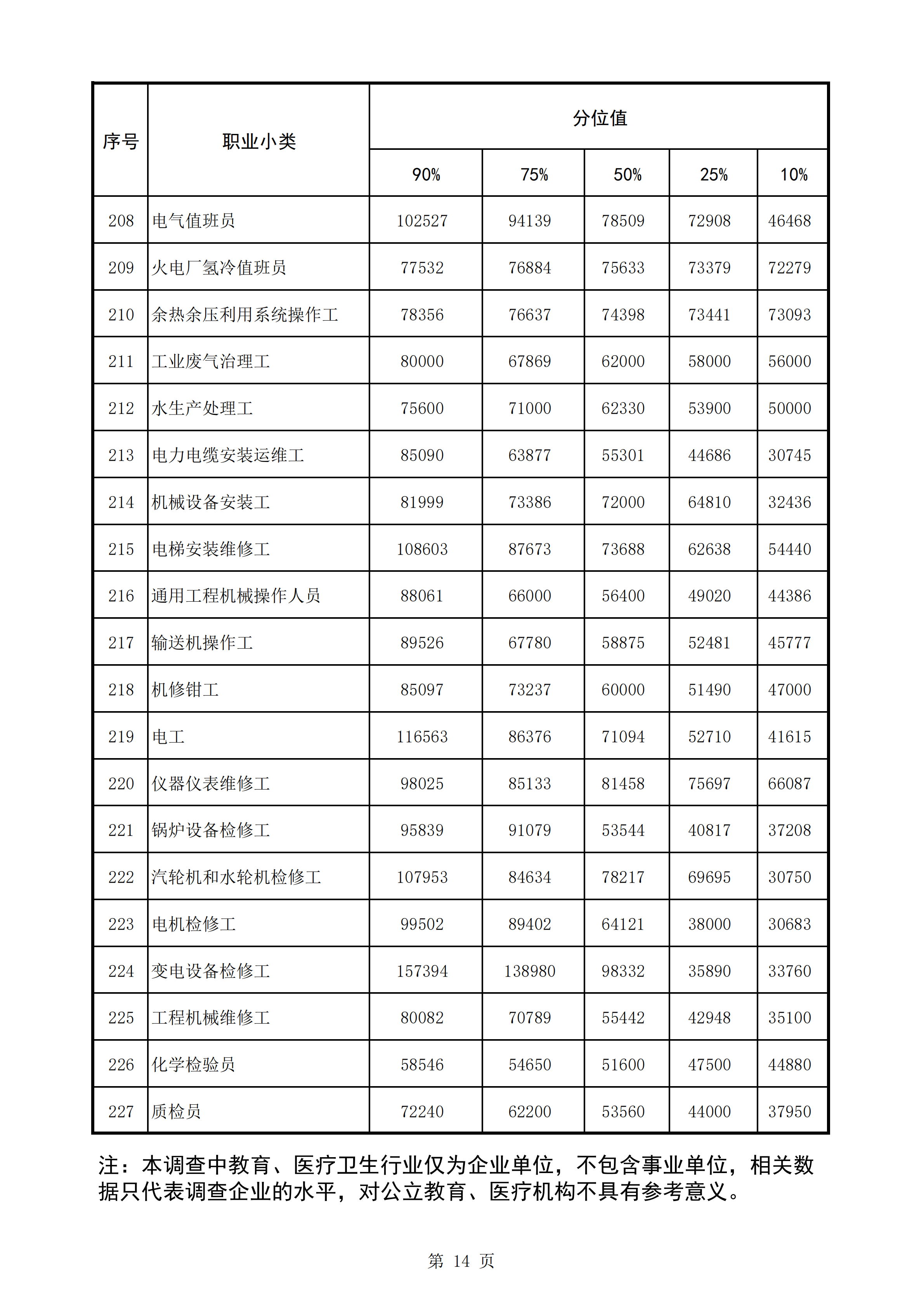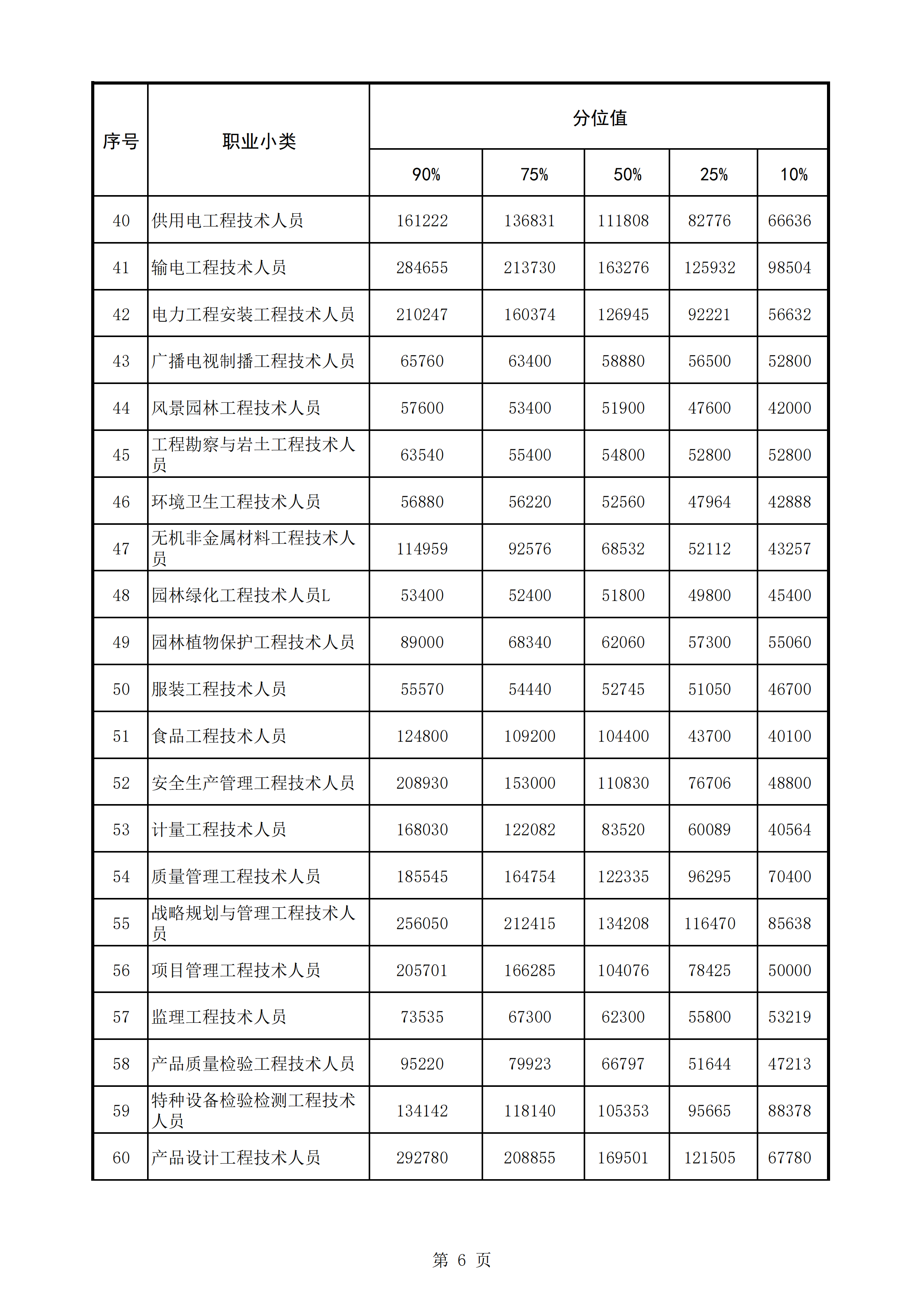 数据显示,今年低位数工资都在最低工资标准以上,但不同工种差异较大。以50分位数为衡量标准,企事业单位负责人(75400元)和专业技术人员(68024元)在职业大类中排名相对较高;从职位小类来看,排在前五的职位分别为研究和开发部门经理(289812元)、产品设计工程技术人员(169501元)、输电工程技术人员(163276元)、安全防范系统安装维护员(152541元)、通信工程技术人员(137651元)。