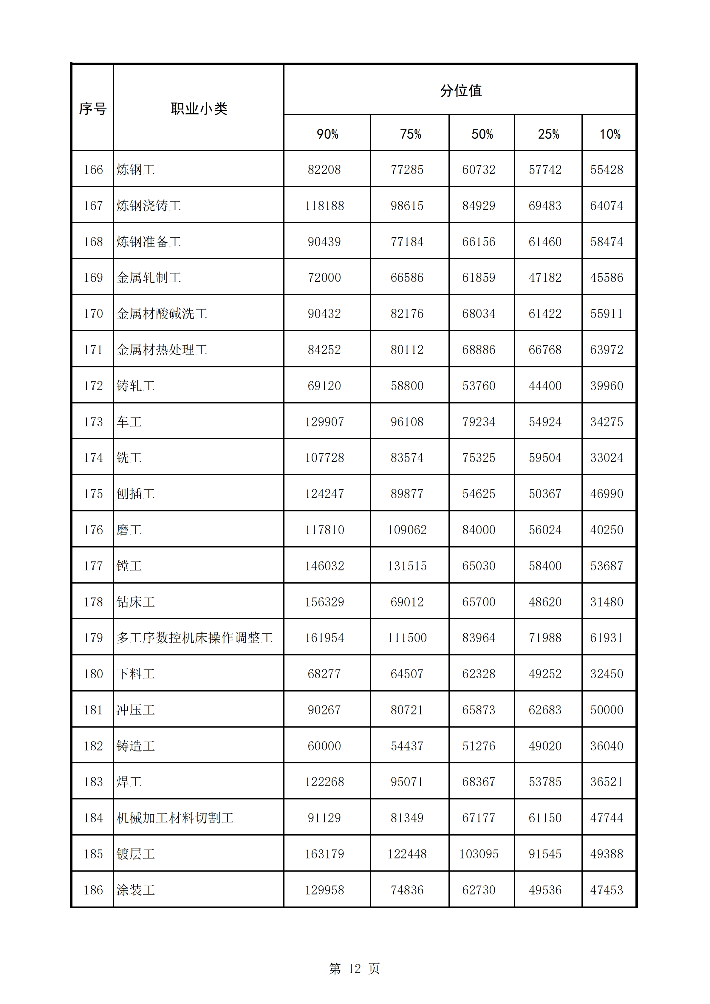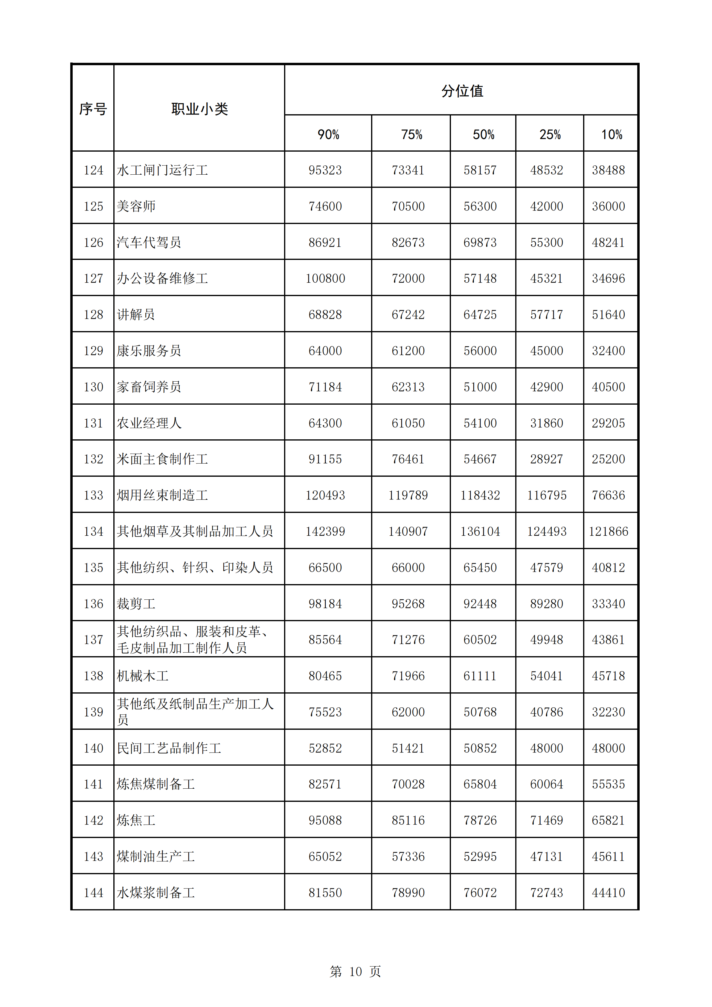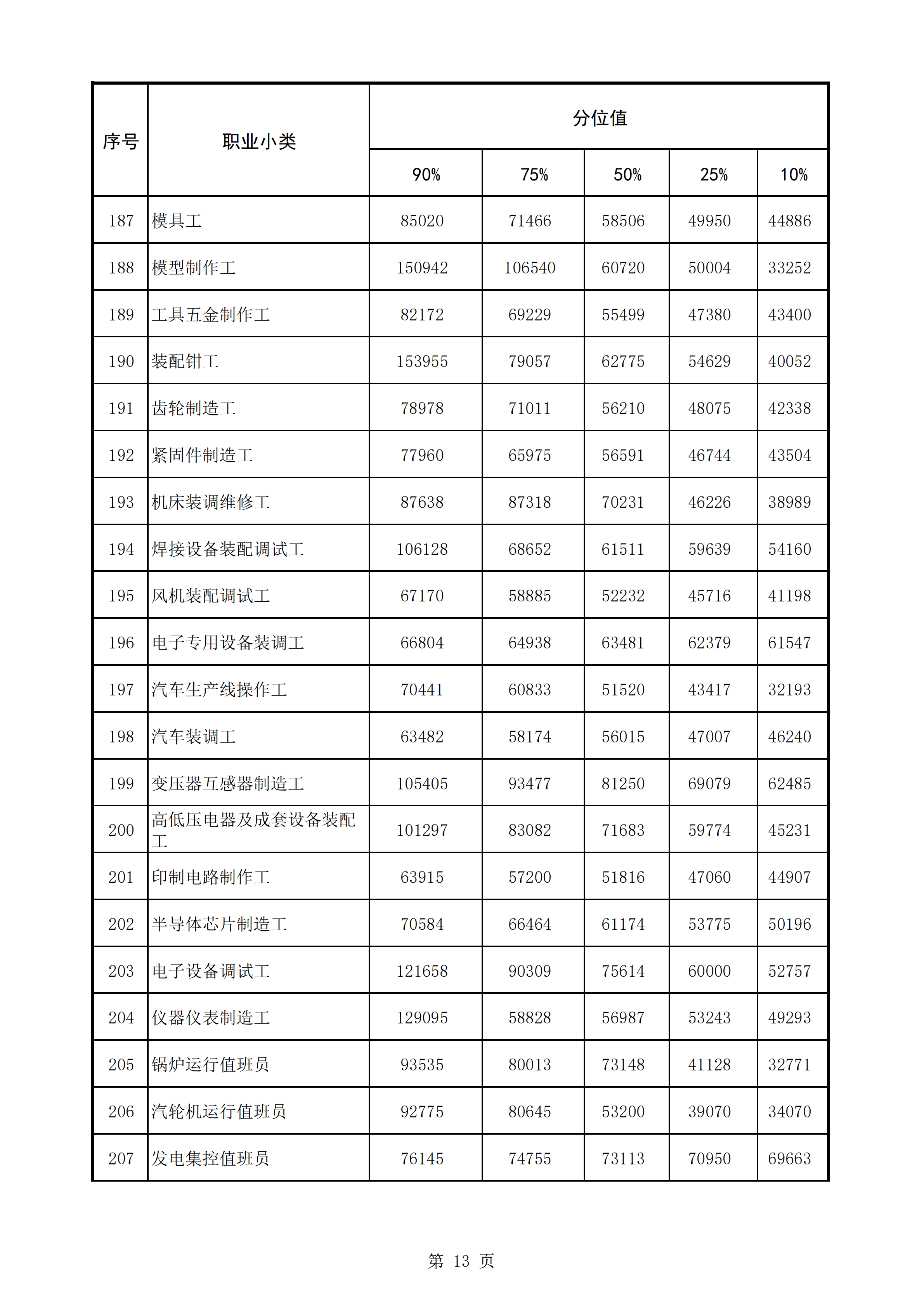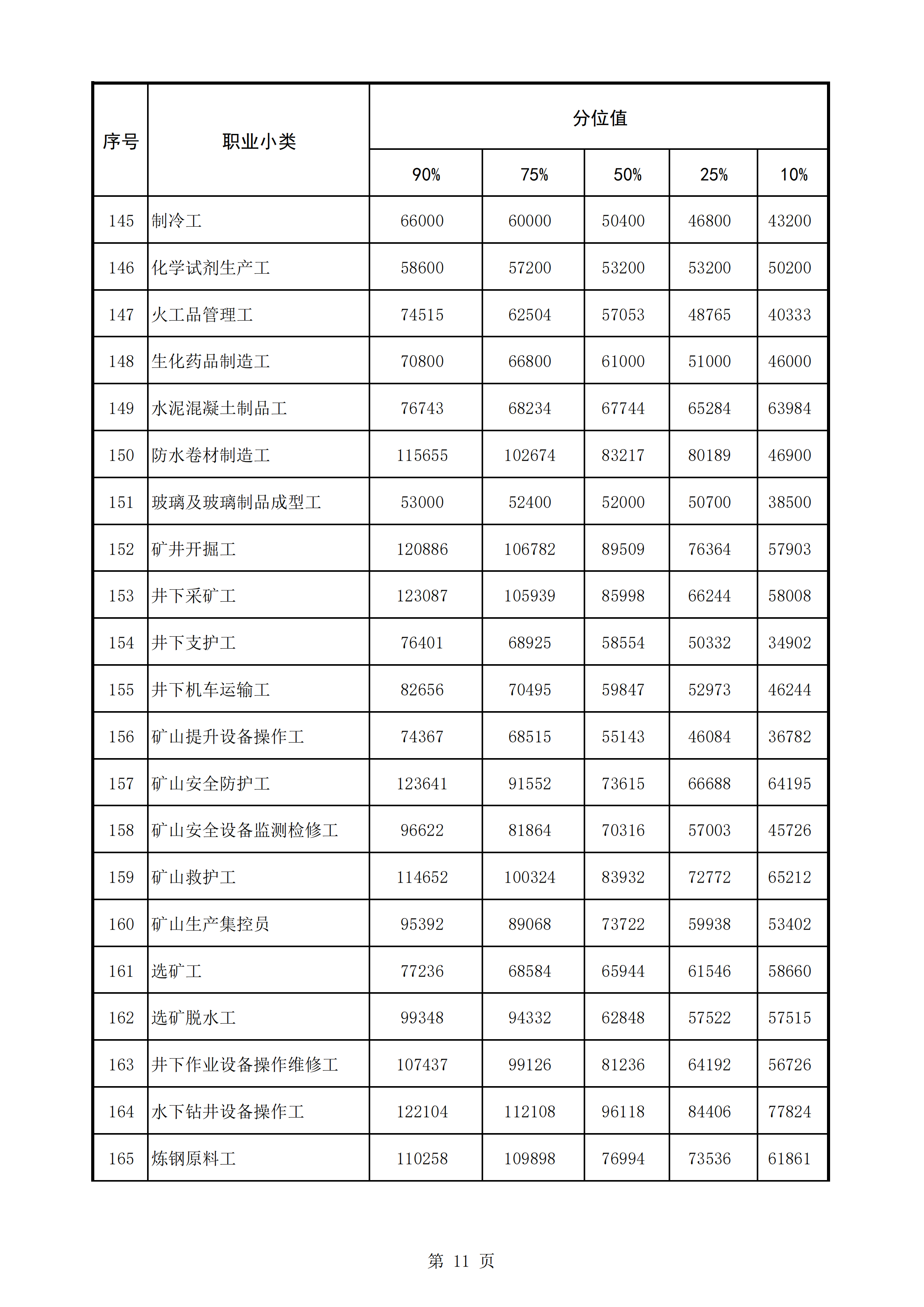 本次发布的从业人员工资报酬信息以年薪收入为主要形式,从工资水平上分90分位数、75分位数、50分位数、25分位数、10分位数五个档次。分位数是指某职业工资报酬从高到低排列,位于90%、75%、50%、25%、10%相应分割点区间数值的平均值,例如:全市有100人参与了某一职业的调查,把他们的年薪从高到低排序,排在第10名的就是高位数(90分位),即该位置年薪大于后面的90人;第25名的是上四分位数(75分位),即该位置年薪大于后面的75人;依次类推,第50名的是中位数(50分位),第75名的是下四分位数(25分位),第90名的是低位数(10分位)。其中,50分位数一般反映该工种薪酬的中位水平,但不等于其平均值。
