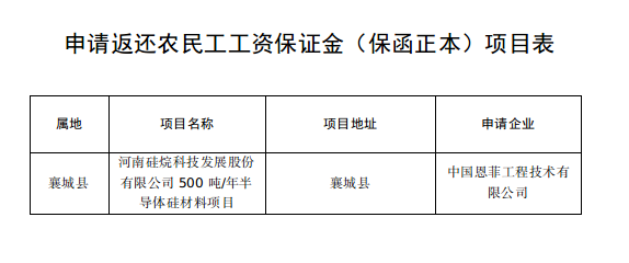根据《河南省工程建设领域农民工工资保证金实施办法》(豫人社规〔2022〕4号),现对申请返还农民工工资保证金(保函正本)工程项目予以公示,如该项目涉及拖欠农民工工资问题,请于公示期内进行反馈,并提供有关证据材料。