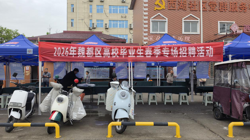 2026年4月20日,一场为就业护航的春季招聘会在魏都区西北大操场西湖社区门前火热开启。本次活动由魏都区人社局联合北大街道办事处举办,依托北大街道办事处零工驿站,聚焦高校毕业生及各类重点群体,扎实推进“稳就业、保就业”工作,为春日的魏都注入了一股强劲的就业暖流。